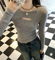 Hot Ssle Hollowed Out Base Shirt with Autumn High-end Feel Long Sleeved T-shirt for Women, Slim Fit, Inner Layer Base